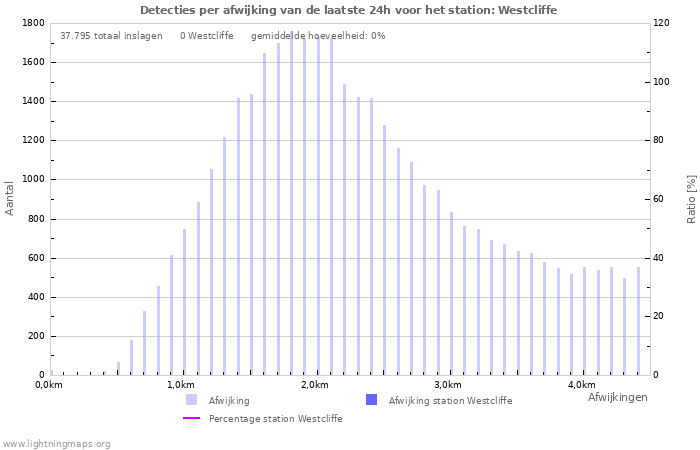 Voor detectie en locatie van een inslag, moeten een minimum van 14 stations het signaal ontvangen.