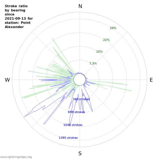 This graph shows the stroke ratio over geographic direction since start of data collecting.