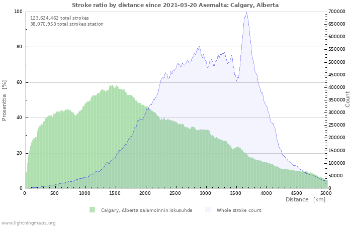 All information here is updated since begin of the recording of MyLightningDetection. The distances refer to the location of station Calgary, Alberta (Canada).