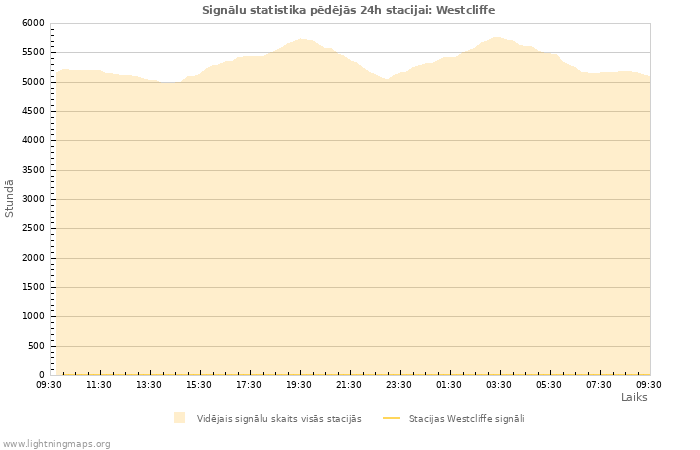 Vienā stundā saņemto signālu skaits stacijā Westcliffe, kā arī vidējā vērtība visās stacijās.