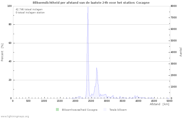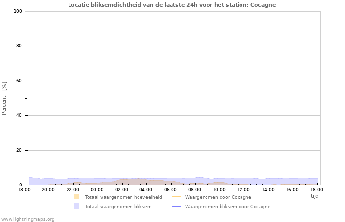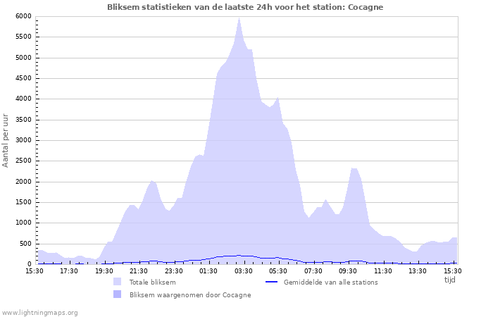 Hier het aantal inslagen per uur gedetecteerd door het netwerk, het aantal inslagen per uur gedetecteerd door het station Cocagne en het gemiddelde aantal inslagen per uur gedetecteerd door alle stations