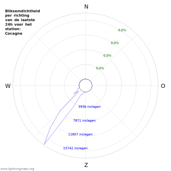 Overzicht van de eigen locatie detectiegegevens in functie van de richting. Aantal gedetecteerde inslagen is ook zichtbaar.