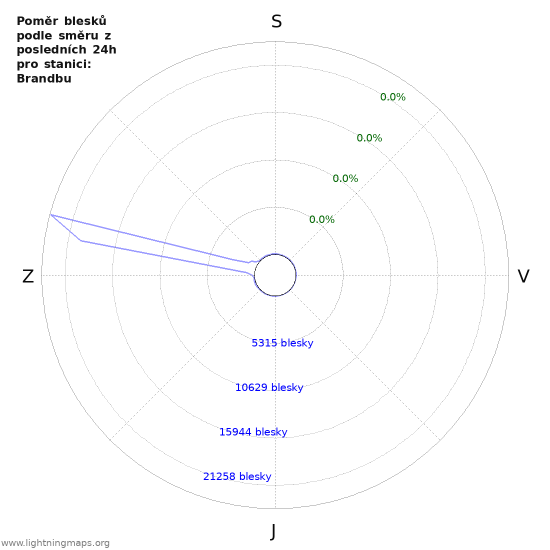 ¨Vlastní lokalizační poměr v geografickém směru. Pro lepší srovnání je zde vidět také celkový počet blesků.