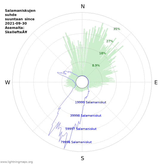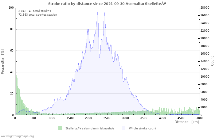 All information here is updated since begin of the recording of MyLightningDetection. The distances refer to the location of station Skellefteå (Ruotsi).