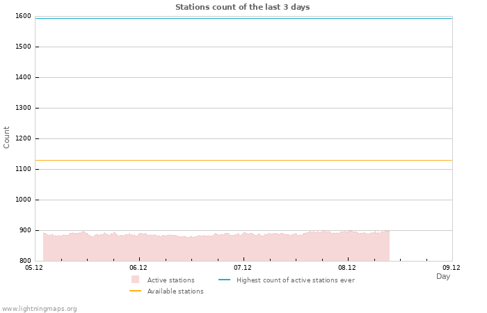 Active stations are sending signales and participate actively in the lightning detection network. Available stations are currently offline, because of technical difficulties and so on.
