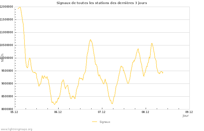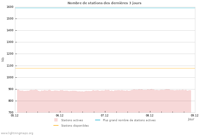 Les stations actives envoient et de participent activement au réseau de détection de la foudre. Des stations disponibles sont actuellement déconnectées,en raison de difficultés techniques ou autres.