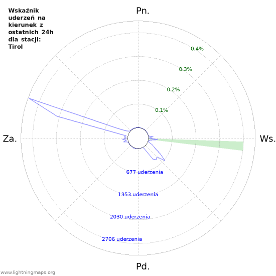 Własny wskaźnik lokalizacji na tle kierunków geograficznych. Dla lepszego porównania dostępna jest liczba wszystkich uderzeń.