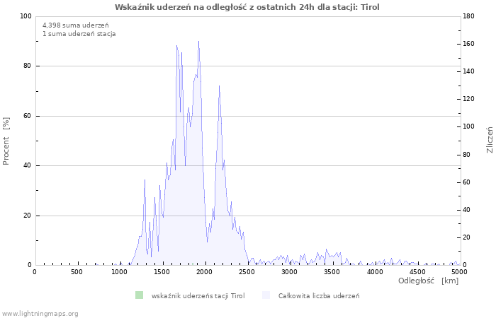 Przegląd własnego wkaźnika lokalizacji od stacji. Całkowita liczba uderzeń od odległości także jest widoczna