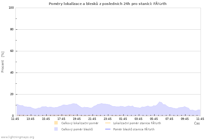 Zde najdete statistika TOA detekce blesků stanice Fürth.