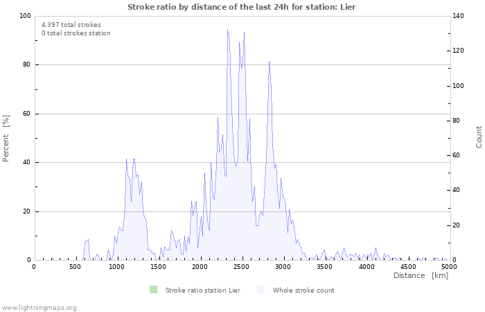 Overview about the own locating ratio over distance from stations. Whole stroke count over distance is also visible.