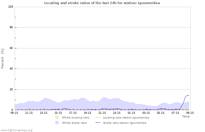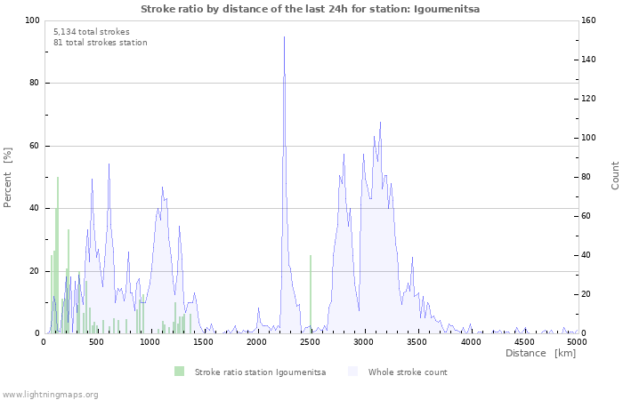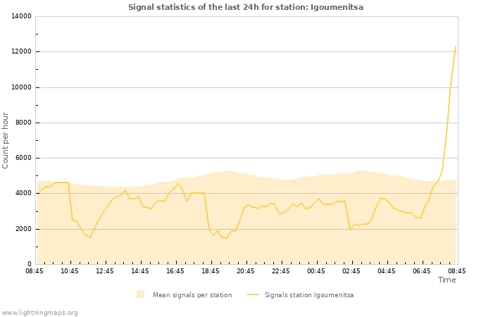 Here you can see the whole stroke count per hours detected by the lightning network, the count of detected strokes/h of the station Igoumenitsa and the mean stroke count for all stations