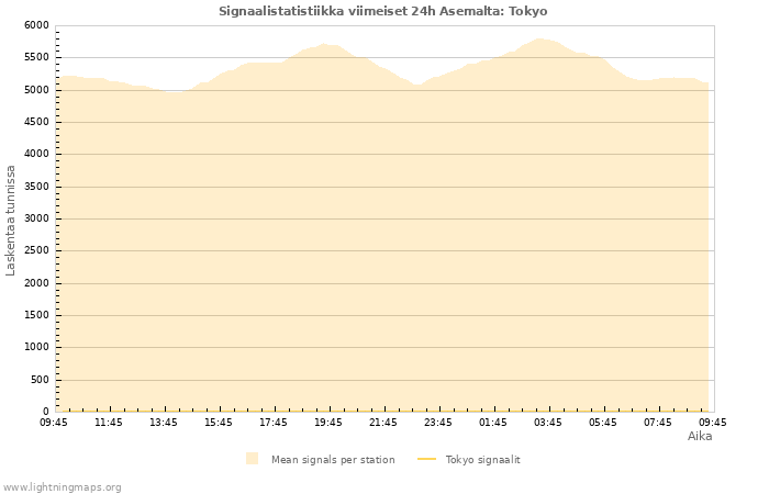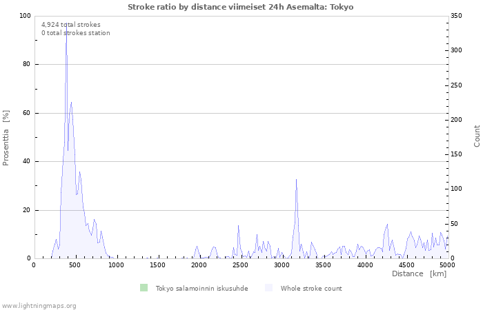 Here you can see the whole stroke count per hours detected by the lightning network, the count of detected strokes/h of the station Tokyo and the mean stroke count for all stations