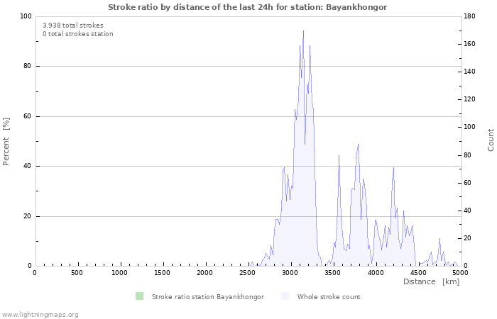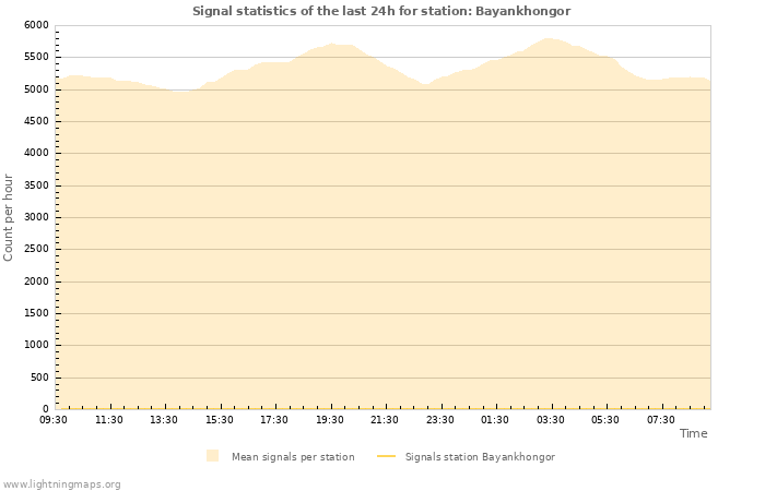 Here you can see the whole stroke count per hours detected by the lightning network, the count of detected strokes/h of the station Bayankhongor and the mean stroke count for all stations