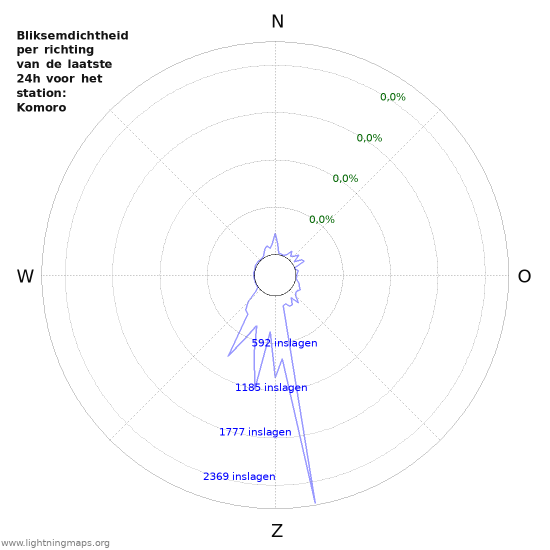 Overzicht van de eigen locatie detectiegegevens in functie van de richting. Aantal gedetecteerde inslagen is ook zichtbaar.