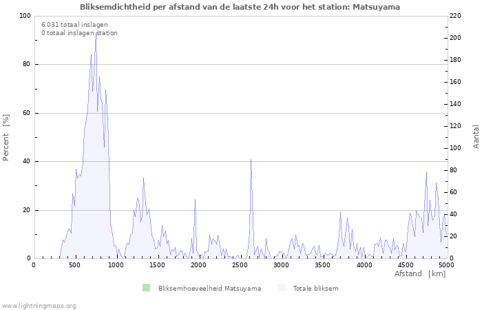 Hier het aantal inslagen per uur gedetecteerd door het netwerk, het aantal inslagen per uur gedetecteerd door het station Matsuyama en het gemiddelde aantal inslagen per uur gedetecteerd door alle stations