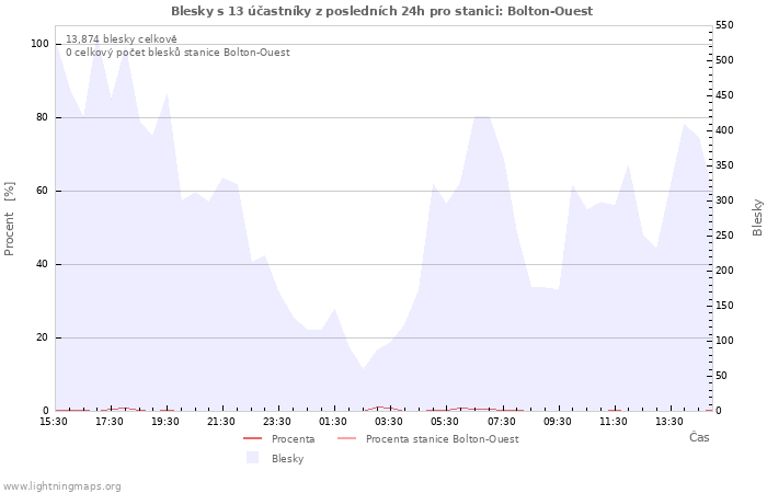 Pro detekci a lokalizaci blesku je třeba získat signál z alespoň 14 stanic.