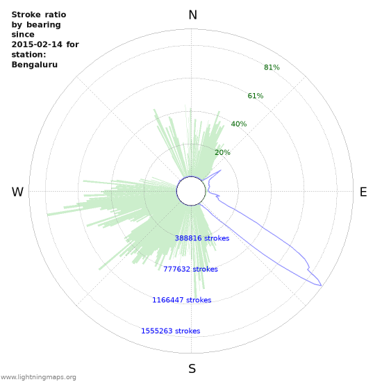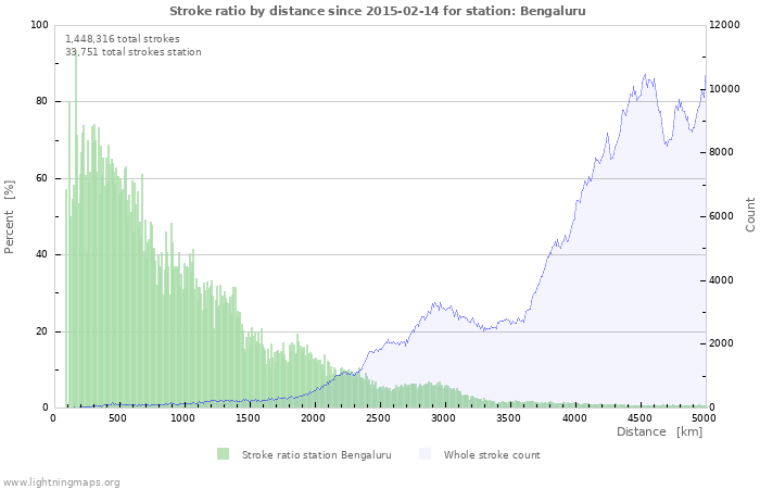 All information here is updated since begin of the recording of MyLightningDetection. The distances refer to the location of station Bengaluru (India).