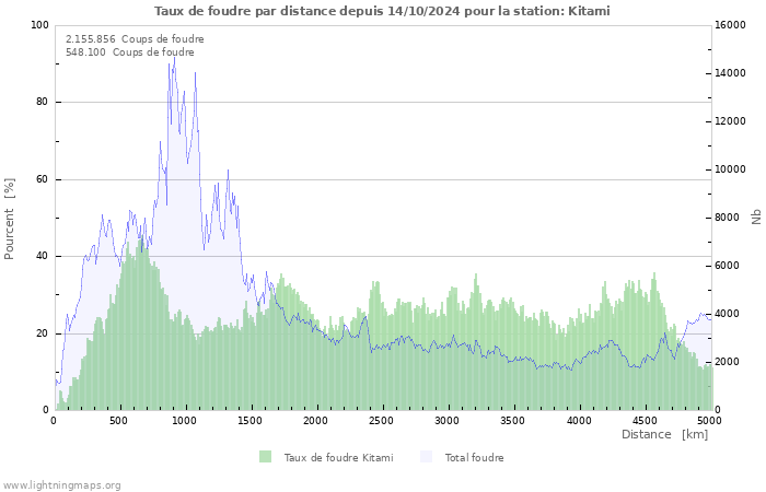 Ce graphique représente le taux de foudre en fonction de la distance depuis la mise en service de la station