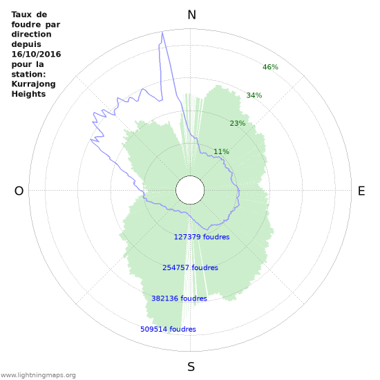 Ce graphique représente le taux de foudre en fonction de l'orientation géographique depuis la mise en service de la station