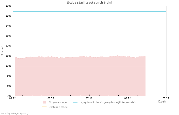 Aktywne stacje przesyłaja sygnały i aktywnie uczestniczą w sieci detektcji wyładowań. Dostepne stacje są obecnie offline, z powodu trudności technicznych itd.