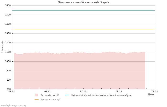Тут можна побачити усі активні станції мережі виявлення блискавок. Ви можете сортувати таблицю, натиснувши на посилання в першому ряду.
