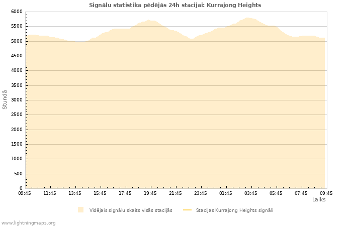 Vienā stundā saņemto signālu skaits stacijā Kurrajong Heights, kā arī vidējā vērtība visās stacijās.