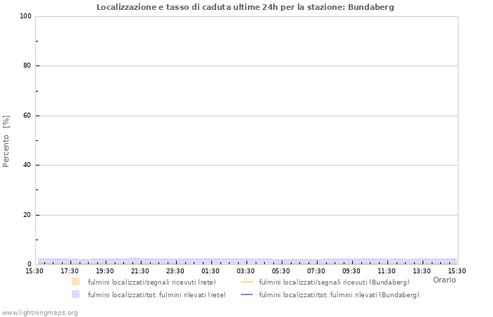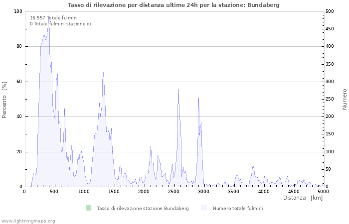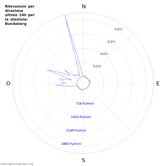 Il grafico riporta il totale delle fulminazioni per ora dell'intera rete, e della stazione di Bundaberg.