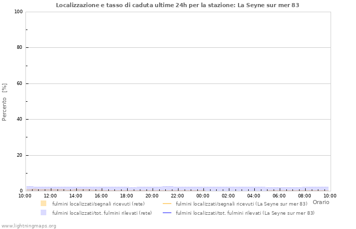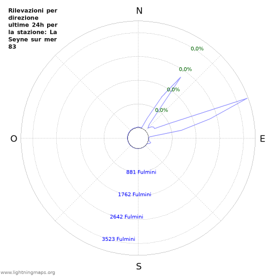 Il grafico riporta il totale delle fulminazioni per ora dell'intera rete, e della stazione di La Seyne sur mer 83.