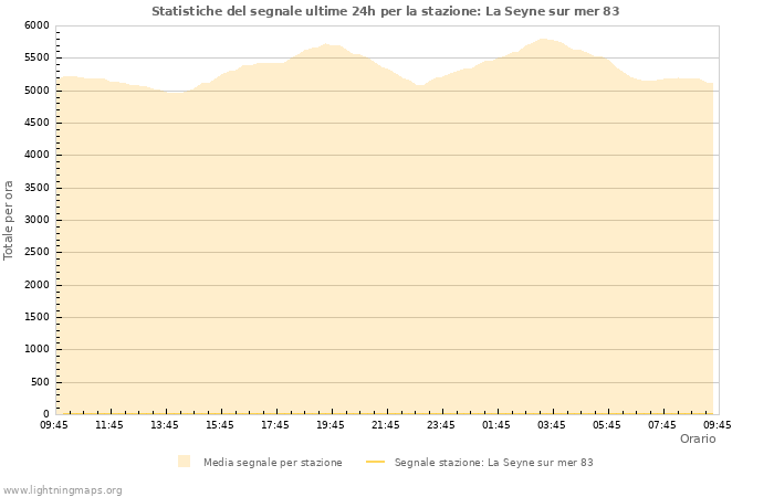 Conteggio dei segnali ricevuti per ora dalla stazione di La Seyne sur mer 83 e media dei segnali ricevuti dalle stazioni in rete.