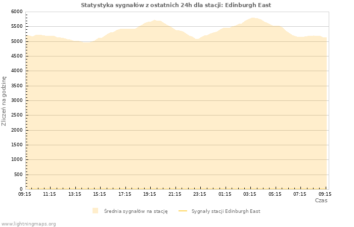 Liczba odebranych sygnałów na godzinę ze stacji Edinburgh East a także średnia ze wszystkich stacji
