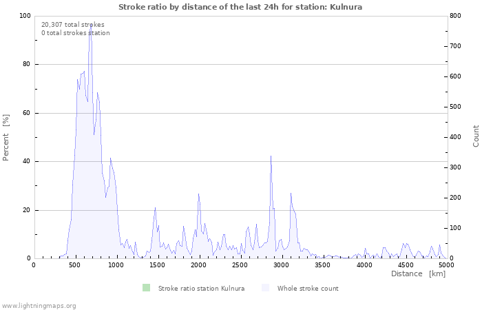 Overview about the own locating ratio over distance from stations. Whole stroke count over distance is also visible.