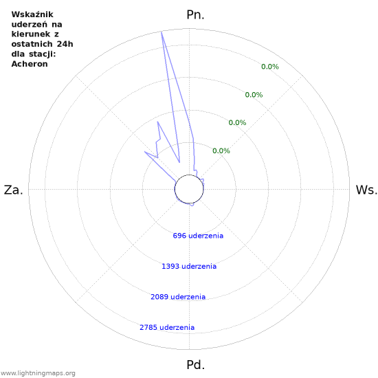 Własny wskaźnik lokalizacji na tle kierunków geograficznych. Dla lepszego porównania dostępna jest liczba wszystkich uderzeń.