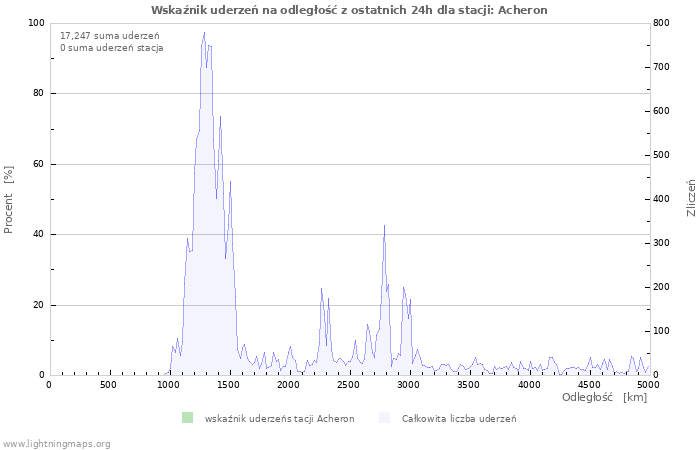 Przegląd własnego wkaźnika lokalizacji od stacji. Całkowita liczba uderzeń od odległości także jest widoczna
