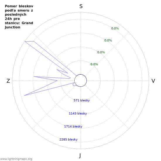 Tu nájdete celkový počet bleskov za hodinu detekovaný v celej sieti, počet bleskov za hodinu zo stanice Grand Junction a priemerný počet bleskov zo všetkých staníc.