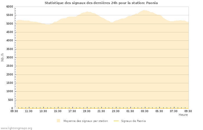 Le nombre de signaux reçus par heure par la station de Paonia ainsi que la moyenne des autres stations.