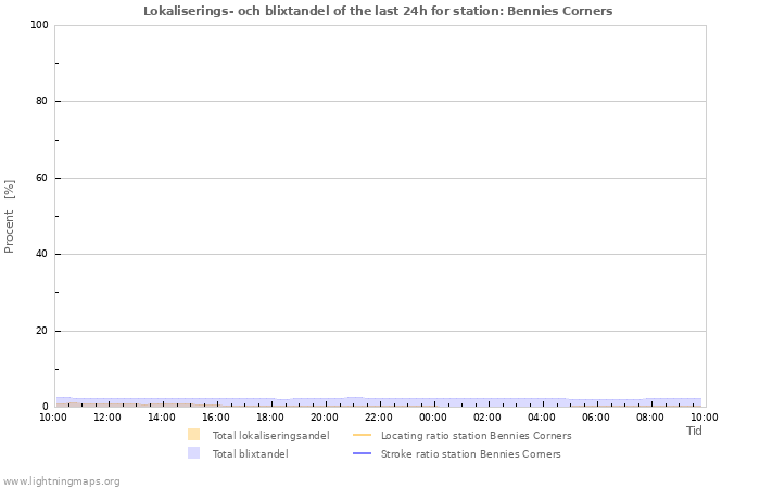 Here you can see the whole stroke count per hours detected by the lightning network, the count of detected strokes/h of the station Bennies Corners and the mean stroke count for all stations