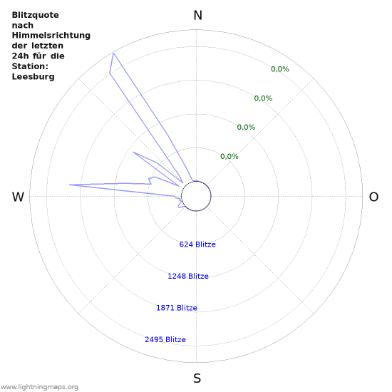 Zu sehen ist die Gesamtanzahl an Blitzen pro Stunde aus dem Ortungsnetzwerk, die Anzahl der detektierten Blitze der Station Leesburg sowie zum Vergleich der Durchschnitt aller Stationen.