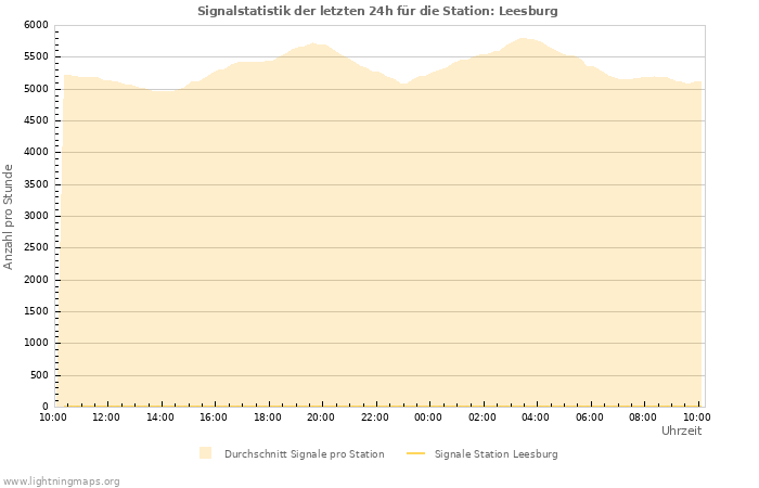 Die Anzahl der empfangenen Signale pro Stunde der Station Leesburg sowie zum Vergleich der Durchschnitt aller Stationen.