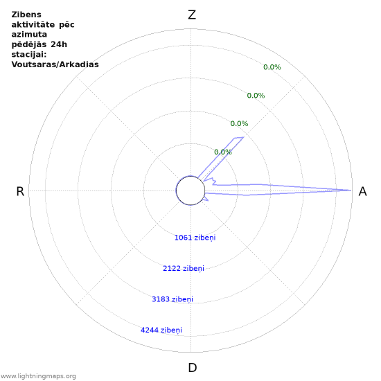 Lokalizācijas attiecība dažādos virzienos. Labākai salīdzināšanai tiek attēlotas arī visas zibens izlādes.