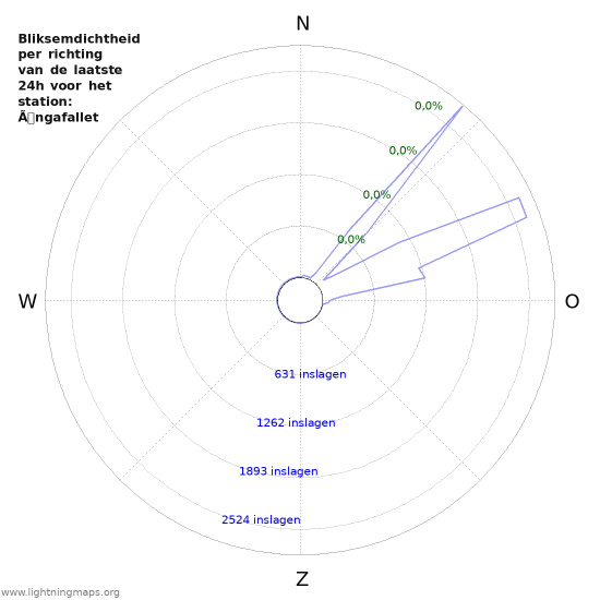 Overzicht van de eigen locatie detectiegegevens in functie van de richting. Aantal gedetecteerde inslagen is ook zichtbaar.