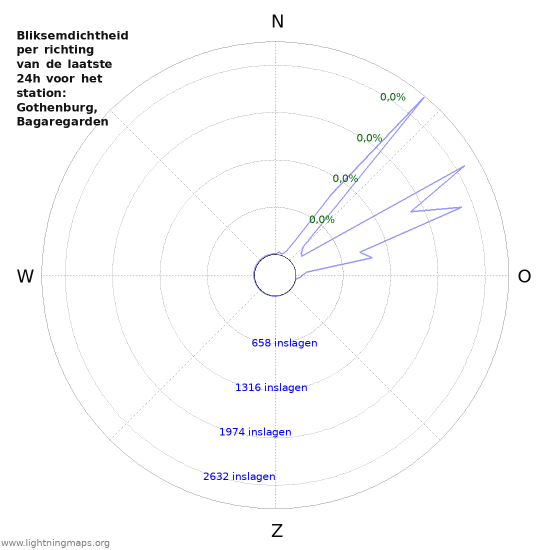 Overzicht van de eigen locatie detectiegegevens in functie van de richting. Aantal gedetecteerde inslagen is ook zichtbaar.