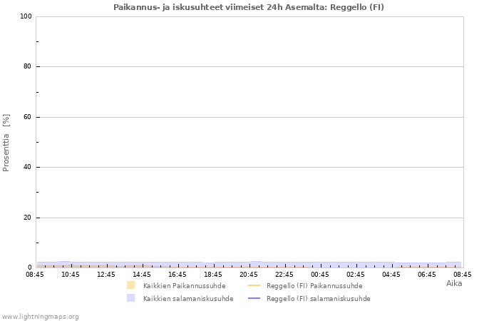 Here you can see the whole stroke count per hours detected by the lightning network, the count of detected strokes/h of the station Reggello (FI) and the mean stroke count for all stations