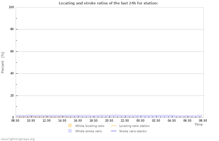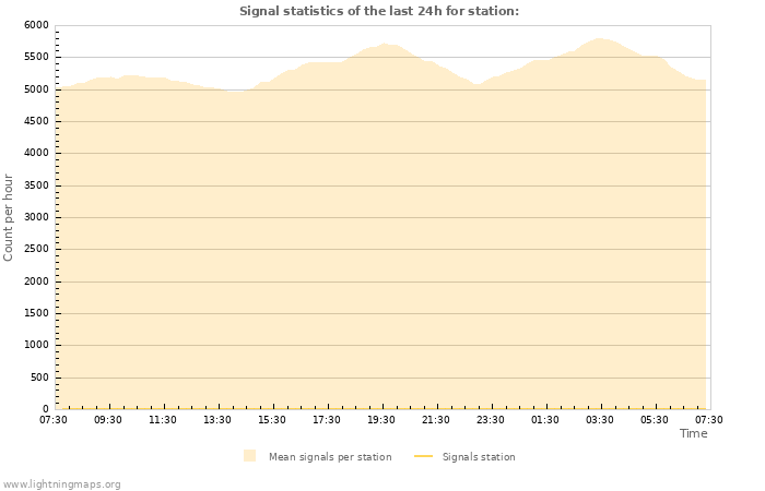 Here you can see the whole stroke count per hours detected by the lightning network, the count of detected strokes/h of the station and the mean stroke count for all stations