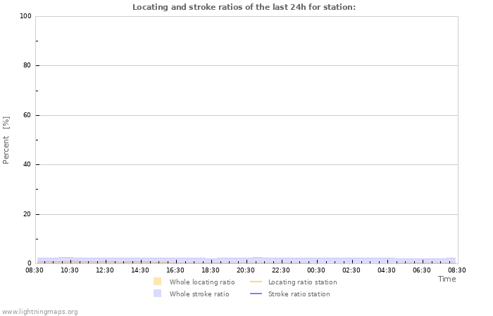 Here you can see the whole stroke count per hours detected by the lightning network, the count of detected strokes/h of the station and the mean stroke count for all stations