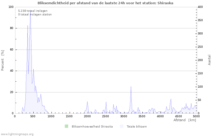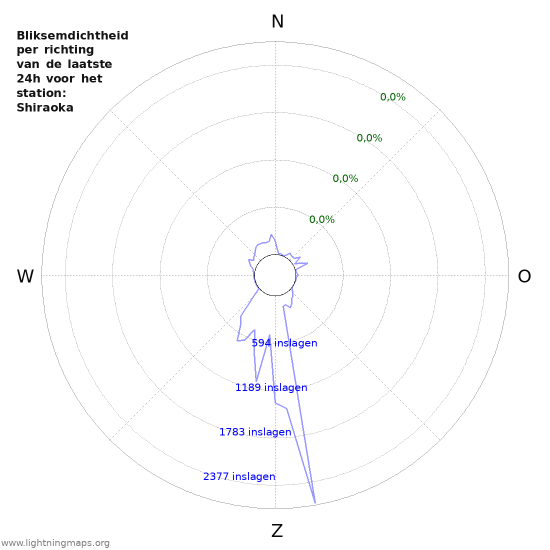 Hier het aantal inslagen per uur gedetecteerd door het netwerk, het aantal inslagen per uur gedetecteerd door het station Shiraoka en het gemiddelde aantal inslagen per uur gedetecteerd door alle stations