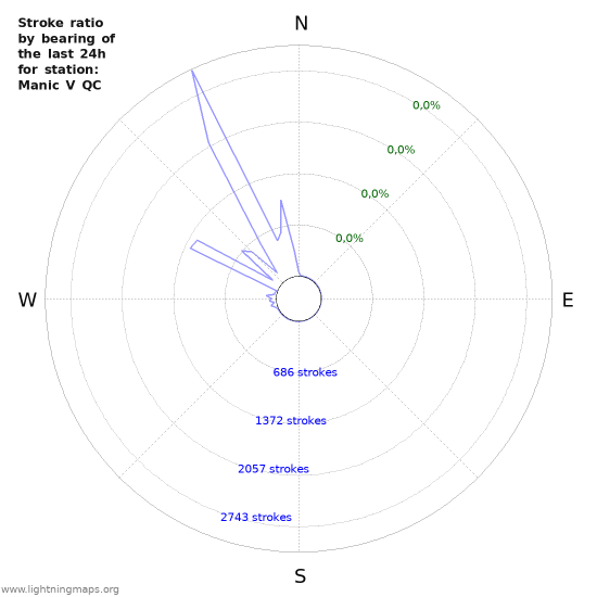 Here you can see the whole stroke count per hours detected by the lightning network, the count of detected strokes/h of the station Manic V QC and the mean stroke count for all stations