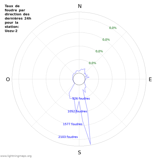Aperçu de la foudre en fonction de la direction. À titre de comparaison, le nombre total de coups de foudre détectés.