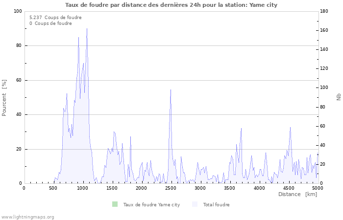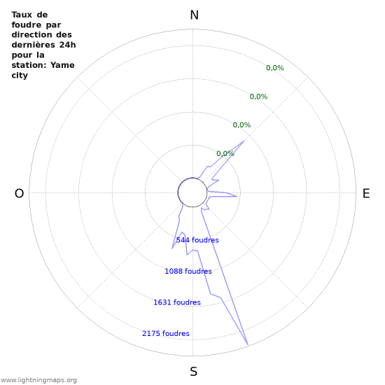 Ici vous pouvez voir la totalité des coups de foudre comptabilisés par le réseau Blitzortung, la quantité de coups de foudre par heure de la station Yame city ainsi que qté moyenne des coups foudre de toutes les autres stations