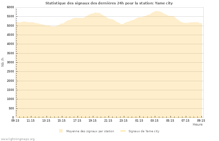 Le nombre de signaux reçus par heure par la station de Yame city ainsi que la moyenne des autres stations.