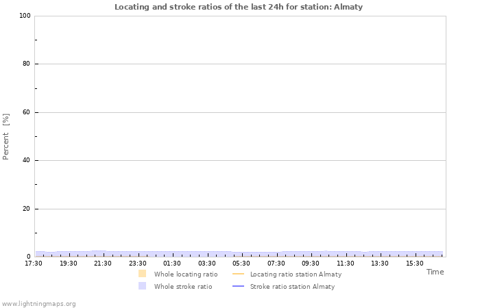 Here you can see the whole stroke count per hours detected by the lightning network, the count of detected strokes/h of the station Almaty and the mean stroke count for all stations